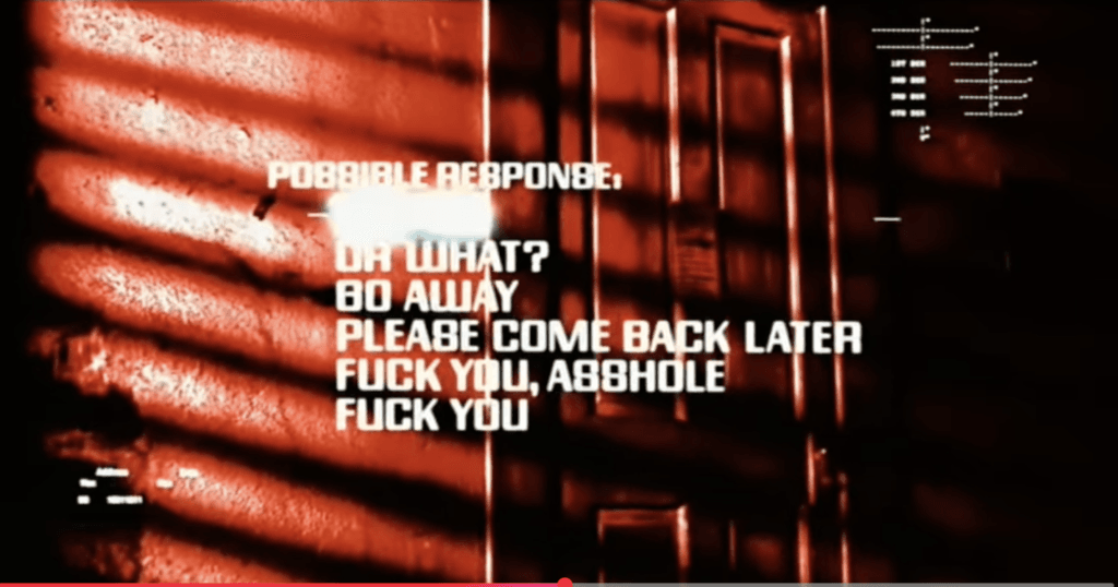 The perfect manifestation of The Terminator’s grasp of human interactions is in this classic scene in which it briefly ponders the response to the janitor’s question regarding the stench emanating from his room and elects the absolutely perfect response of “Fuck you, asshole.” The response is terse, appropriate for the context and achieves the purpose of warding off the nosy janitor, lest he discover that the robot was arming itself to the hilt.